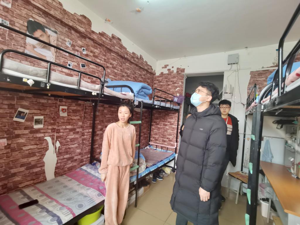 为进一步加强宿舍安全管理,更好地掌握新学期学生的思想动态,落实疫情防控工作,食品系全体班主任于3月3日上午8点30分,深入社区走访宿舍。党总支副书记赵蓓、团总支书记王晶、辅导员于小康以及各班班主任,对返校学生的思想状况、个人疫情防控状态、宿舍卫生以及用电安全等进行了详细了解。