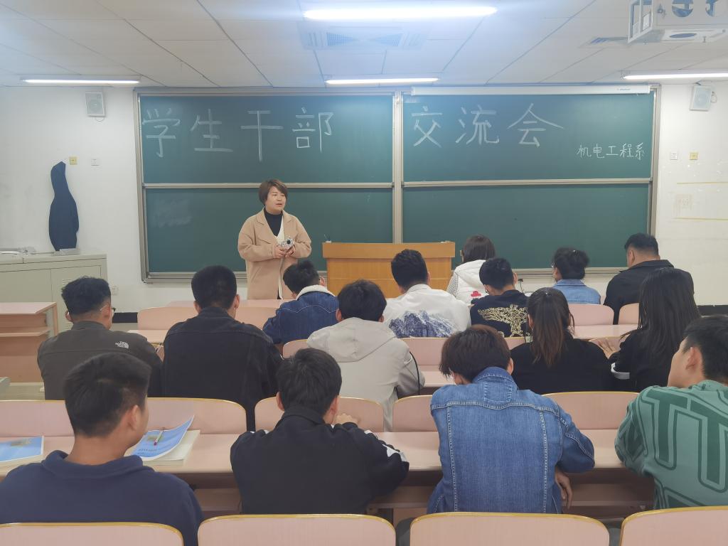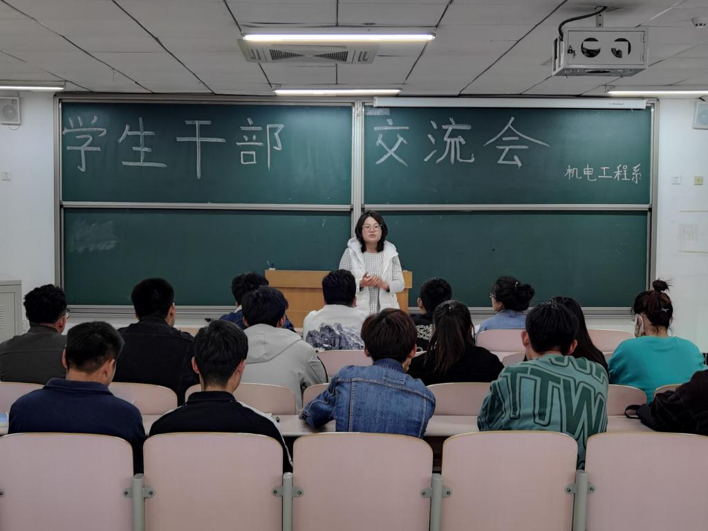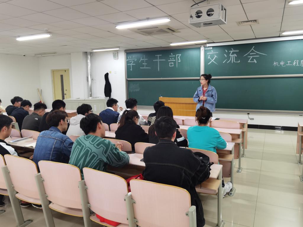 为进一步提高对学生情况的了解,保证各学生信息的真实性,完整性,分析当前存在问题,安排下一步工作任务。机电工程学院于4月1日下午在二教507召开学生干部交流会,机电工程学院团总支副书记包微老师,辅导员老师韩旭艳、都青、李亮以及学生会干部、各班班长副班长团支书参加了此次会议。