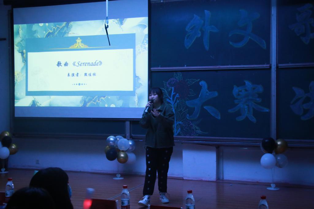 大赛面向学院全体热爱外文歌曲的学生,经过高标准的层层选拔,最终八位优秀的选手进入了决赛。在决赛伊始,主持人宣布比赛规则,比赛共分为两轮。第一轮由八位参赛选手依次进行演唱,由评委打分选出得分最高的五位选手晋级第二轮比赛,进行冠亚季军的争夺。参赛选手们激情演唱,将个人魅力展现的淋漓尽致。吕俊洁演唱的《You are my everything》,婉转动听,声入人心,十分有代入感。刘彦新带来的《I really like you》轻快动听,高音一出便俘获了评委老师和在场观众的心,其节奏欢快,律动极强。殷佳欣带来的《Young boss》无疑点燃了现场的气氛,引的现场观众阵阵欢呼,并获得了评委打出的29.3的高分。经过现场评委打分,最终张雪妮、刘彦新、秦琅治、殷佳欣、姜怡君五人成功晋级第二轮比赛。最后,经过激烈的角逐,刘彦新、殷佳欣、秦琅治三人凭借动听的歌声和精湛的演唱技巧在这场比赛中脱颖而出,最终刘彦新获得冠军,殷佳欣、秦琅治分别摘得亚军、季军。