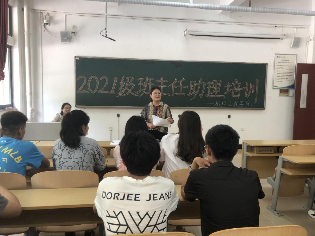 为使2021级班助更好的了解班助的责任和义务,为机电工程学院再创辉煌,机电工程学院于7月1日在一教118召开2021级班主任助理培训会,全体入选2021级班主任助理参加,团总支副书记包微老师2021级辅导员都青莅临本次会议。