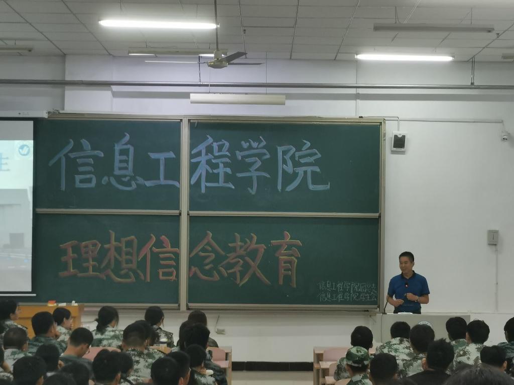 讲座伊始,学院党总支副书记王明印欢迎全体新生加入信息工程学院这个大家庭,他对新生军训时期的表现予以肯定,他鼓励同学们在军训中增强体质,磨炼意志,将军训的优秀表现作为开启大学新篇章的第一步。随后,结合自身经历,分别从为何要树立理想信念,如何树立理想信念,以及理想信念对大学生的意义等三个方面出发,引导新生重视大学的学习与生活。他指出,大学是人生中最关键的四年,大学时期树立的世界观、人生观和价值观以及行为习惯会对今后的学习生活产生极大影响。他强调,同学们应当在入学初就要制定好规划,立好目标,要学会独立思考、自主学习、养成高度的自律自制能力,并且要在学习之余从多方面提升个人能力,比如坚持发展一项个人特长、积极参加科技创新活动、投身志愿服务或社会实践,做到学习与科技、实践全方面发展,努力成为德智体美劳的新时代青年。