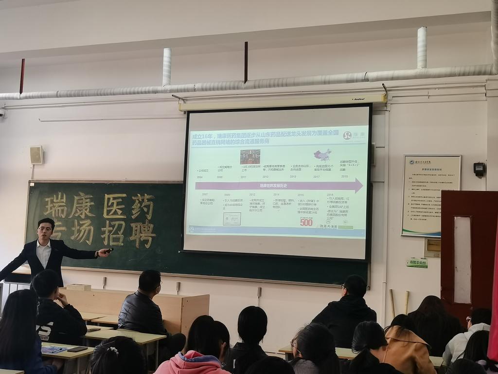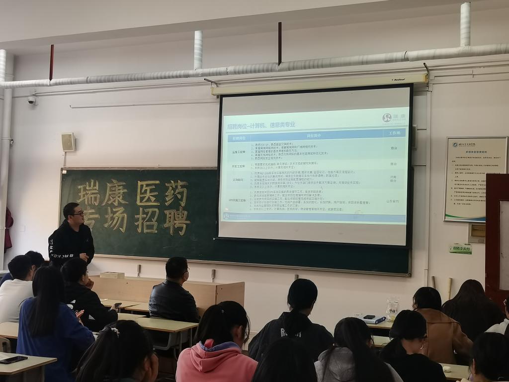 为了给应届毕业生们提供更好的就业机会,帮助企业招募优秀人才。10月27日下午,瑞康医药集团有限公司来我校参加由校就业处主办,食品与生物工程学院承办的校园专场招聘会。招聘经理张鹏,人才发展经理赵新宇,以及2022届的毕业生参加此次招聘会。