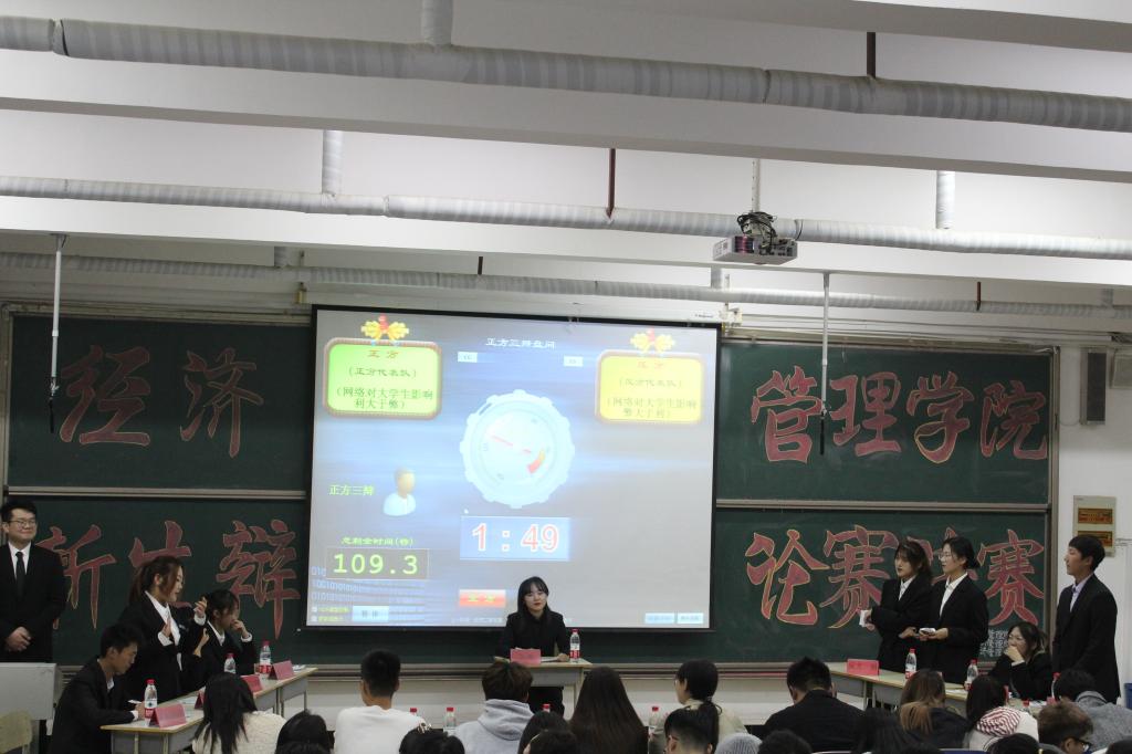 本次辩论赛以“网络对大学生的影响利或弊”为主题展开,继主持人介绍完正反方辩手之后,比赛进入开篇立论环节。双方选手在立论、驳立论、对辩等各个环节中思路清晰,唇枪舌剑,字字珠玑,使现场气氛迅速升温。反方辩手针对网络让大学生自我思考能力降低、过于依赖网络、网络资料复杂、大学生无法准确辨识等方面的问题旁征博引,妙语连珠。在双方展开自由辩论的时候,反方三辩步步为营,与团队极力配合,默契十足。比赛接近尾声,反方以“网络对大学生的影响弊大于利”的论题获胜,反方三辩荣获“最佳辩手”称号,同时校辩论队各队长及时指出了辩论赛中新生选手的问题。