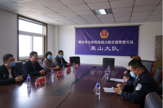 会计与金融学院于2021年11月4日赴烟台市公安局高速公路交警支队莱山大队开展志愿服务座谈会。烟台市公安局高速公路交通警察支队莱山大队大队长任军、会计与金融学院党总支书记曹钊庆、莱山大队副大队长郝小军、办公室主任王华娟、会计与金融学院团总支书记孙小惠以及辅导员纪靖欣、郑家申共同参加本次座谈会。
