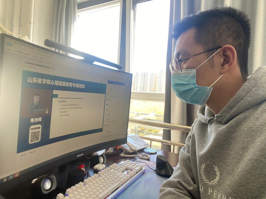 开学以来,于小康每日按学院要求统计疫情严重地区学生人员名单。在这段时间里,他白天做好日常工作,晚上等待公安推送的大数据,为了及时对学校通知作出回应,他从未在凌晨两点前睡过觉,早上六点前就起床,早早来到学校开始一天的工作。繁忙期间,为提高个人业务素质,也为了疫情防控工作的顺利开展,他还抽空参加《山东省学校线上心理健康教育专题培训活动》。