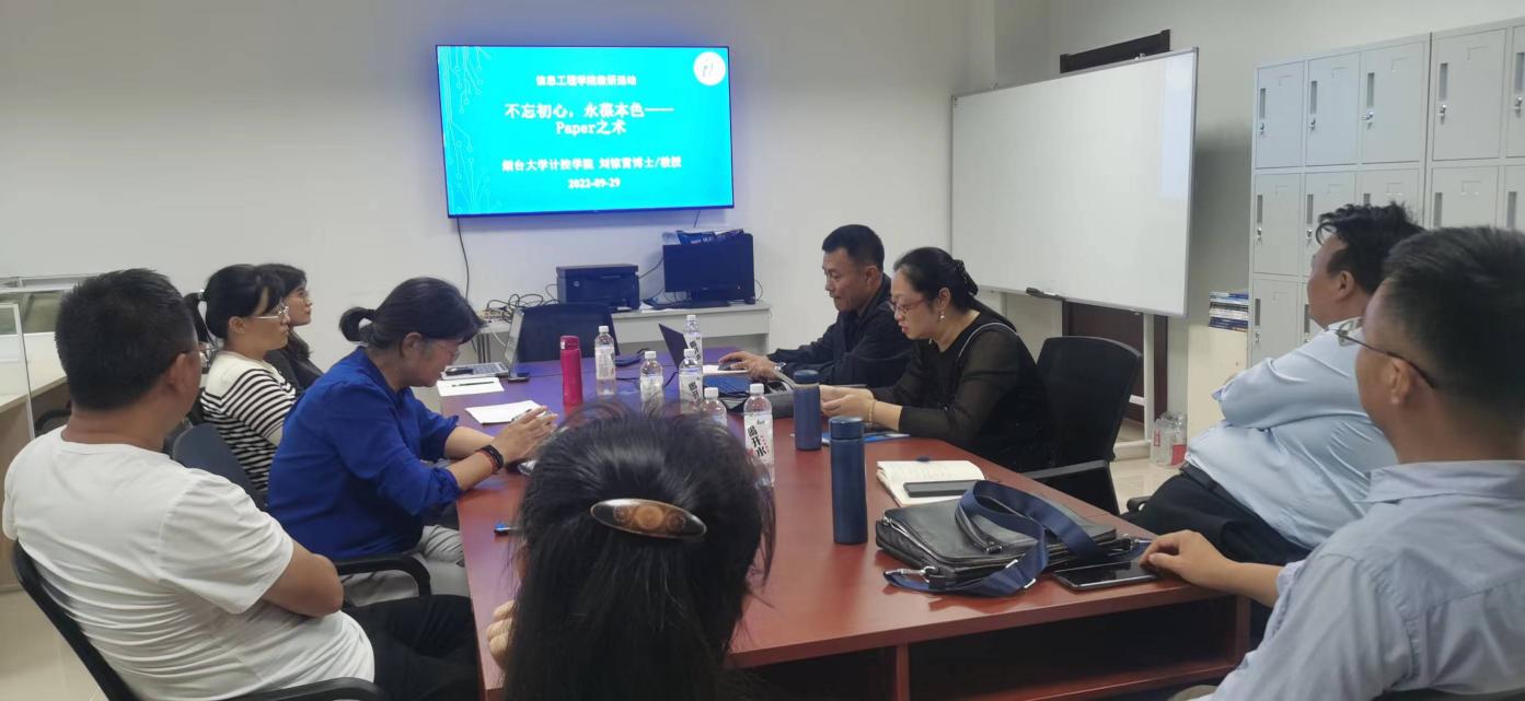 9月29日下午,信息工程学院开展教研活动,特邀烟台大学计算机与控制工程学院刘惊雷博士做题为《不忘初心,永葆本色——Paper之术》的报告,信息工程学院全体教师参加此次活动,计算机教研室主任付斌主持此次会议。
