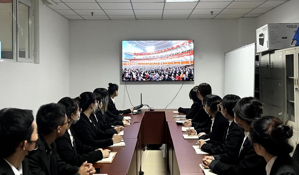 10月16日上午10时,中国共产党第二十次全国代表大会在北京人民大会堂开幕,习近平代表十九届中央委员会向大会作报告。为学习党的二十大,引导师生坚定不移地听党话、矢志不渝跟党走,食品与生物工程学院充分利用电视、网络、移动终端等形式组织党员干部、全体师生收听收看大会开幕盛况。食品与生物工程学院总支部委员及全体学生党员集体观看了党的二十大开幕盛况。