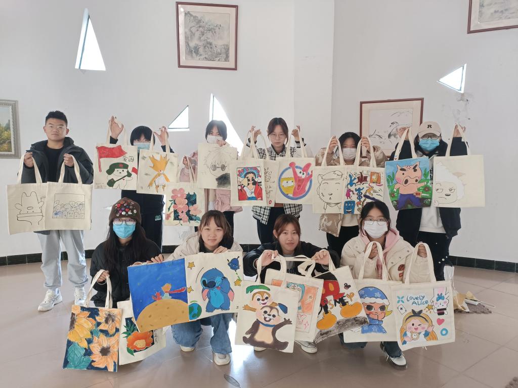 活动过程中,参赛人员自带纸板用于调色和平铺,学生会宣传部提供颜料和画笔。帆布包绘制完成后交由宣传部收回评奖,并配合网络技术部进行线上展示。经过紧张激烈的角逐,本次活动选出一等奖两名,二等奖四名,三等奖八名,颁发证书作为奖励。赛后优秀作品将交由团总支科技实践部以2022年优秀社会实践团队的名义捐给贫困地区的儿童。
