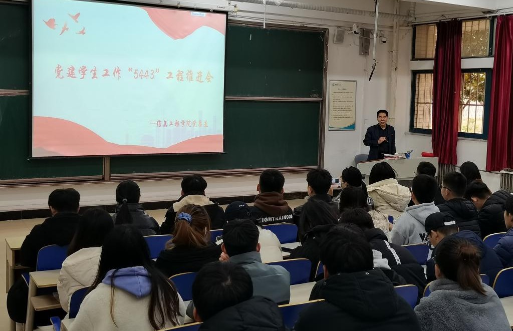 11月30日,信息工程学院于一教101召开党建学生工作“5443”工程推进会。会议由信息工程学院党总支副书记王明印主讲,全体学生党员到场参会。