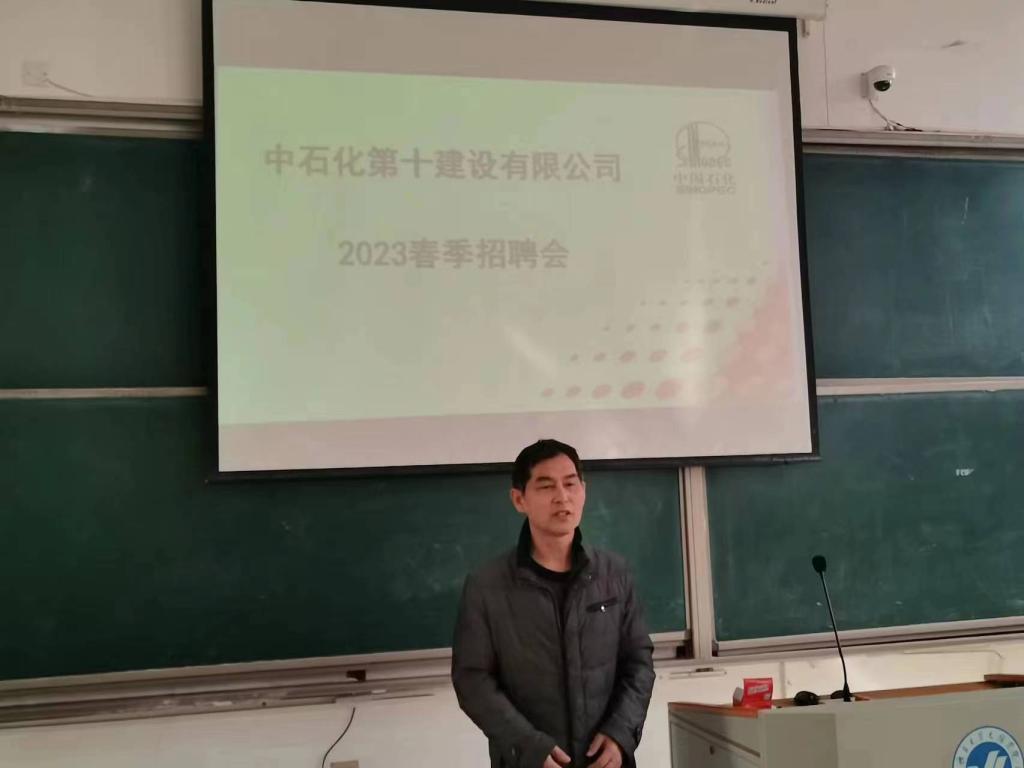 企业负责人对其公司进行了整体的介绍,阐述了中石化第十建设有限公司的发展前景和在行业内所具备的优势,提出了公司新型的发展理念和未来发展方向。此外,还为即将毕业的学生解答了就业相关的问题,使毕业生同学们更深层次地了解到就业相关流程。