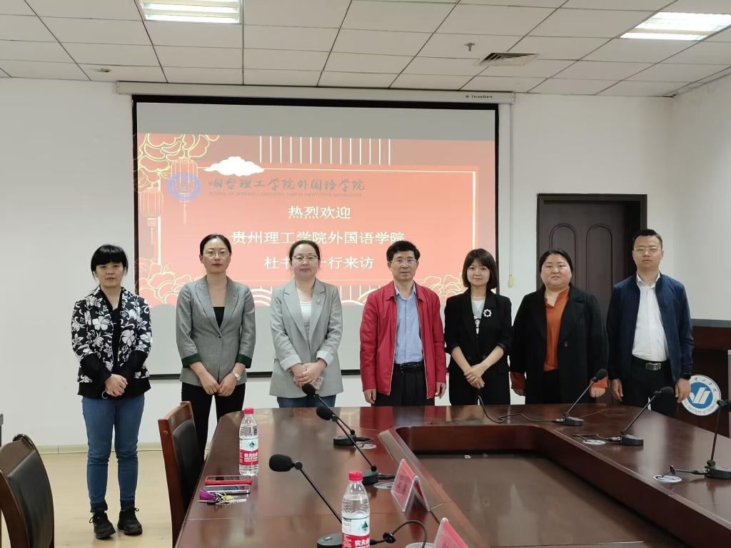 院长刘白玉对贵州理工学院外国语学院一行的到访表示热烈欢迎,他介绍了外国语学院的发展定位、专业建设以及办学特色等。外国语学院目前教职工八十余人,由四个本科专业、一个专科专业和一个专升本专业组成,并着力打造商务英语特色专业,争取在五年之内跻身全省同类高校前三。党总支副书记赵蓓介绍了外国语学院的党建学生工作开展情况,重点分享了今年考研取得优异成绩的经验做法。