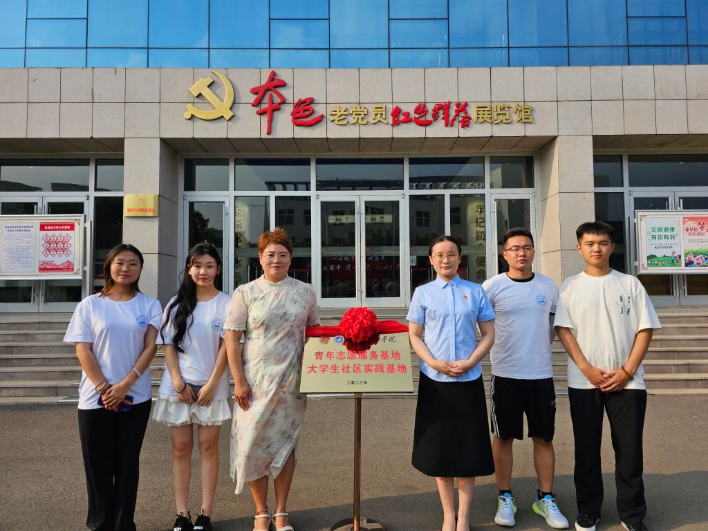 文法学院团总支书记陈秀慧与展览馆负责人一同为“烟台理工学院大学生社区实践基地”进行挂牌仪式。进一步加强校地之间的交流与合作,共同推动爱国主义教育基地建设开创新局面。