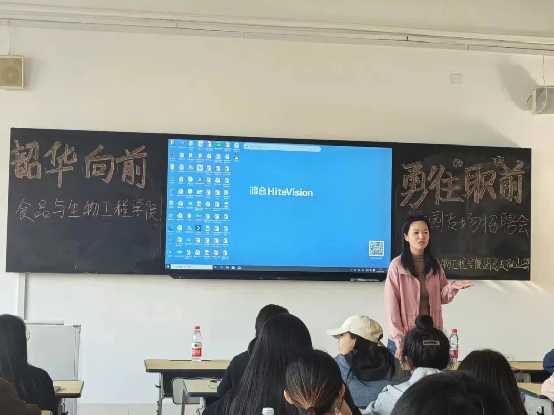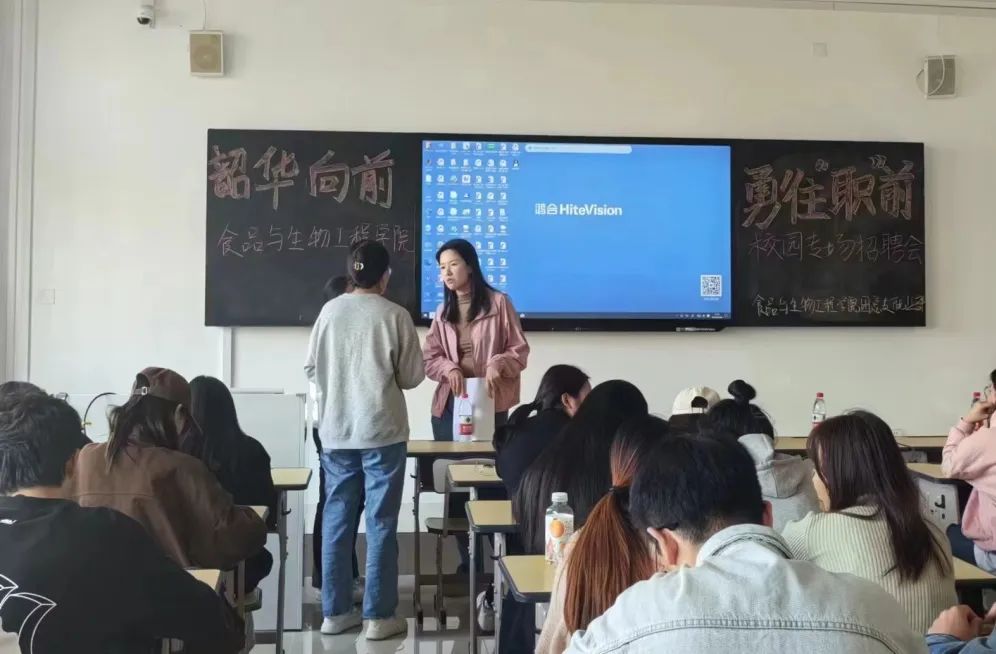 招聘会伊始,山东仙坛食品有限公司人事负责人都美君围绕招聘岗位、岗位职责、招聘计划以及薪资待遇等方面对企业进行了系统完善的介绍,并针对学生提出的问题给予相应指导。招聘人员与应聘同学在现场进行了面对面交流,双方在一问一答中,充分对接人才供需意向。