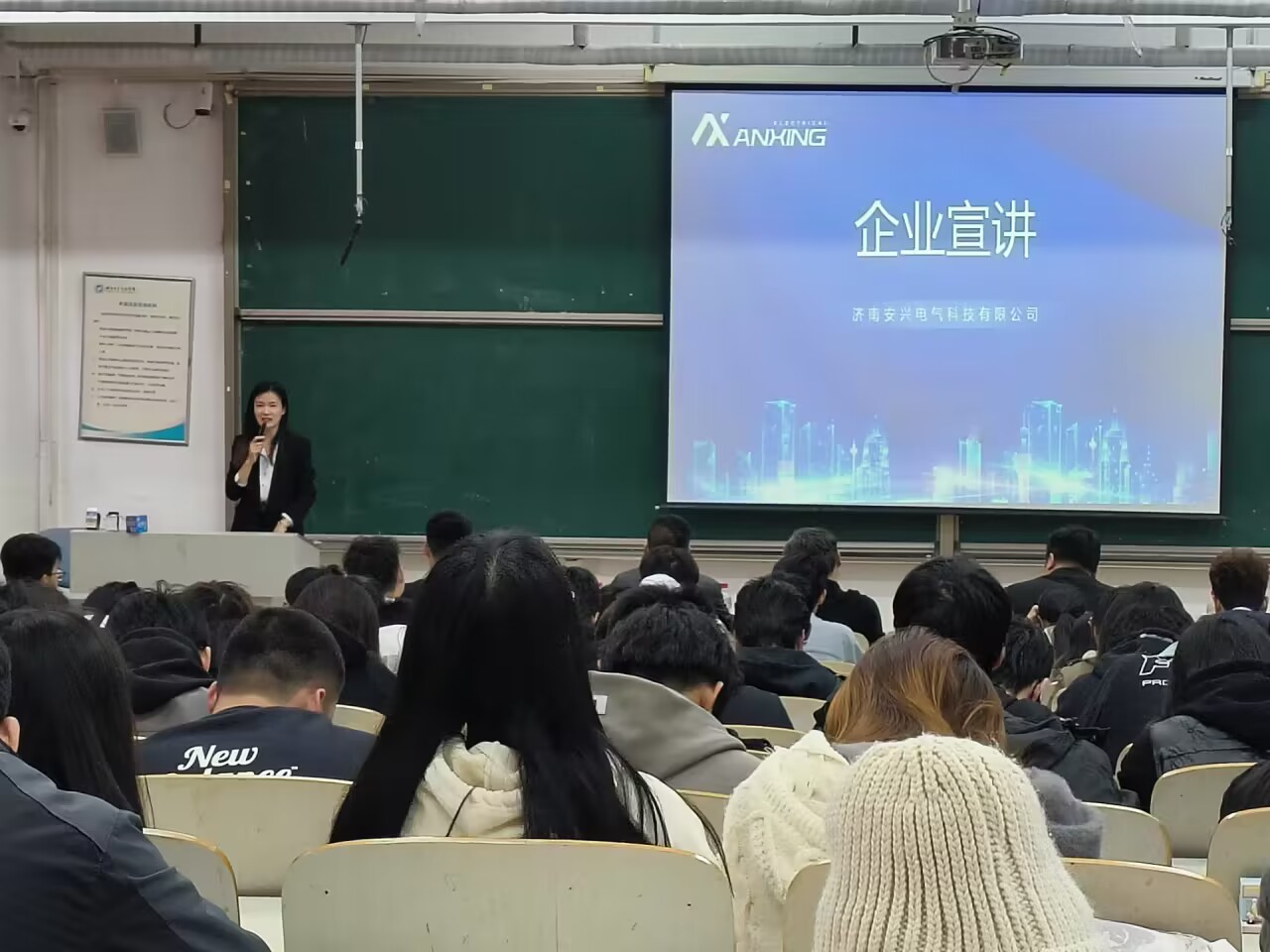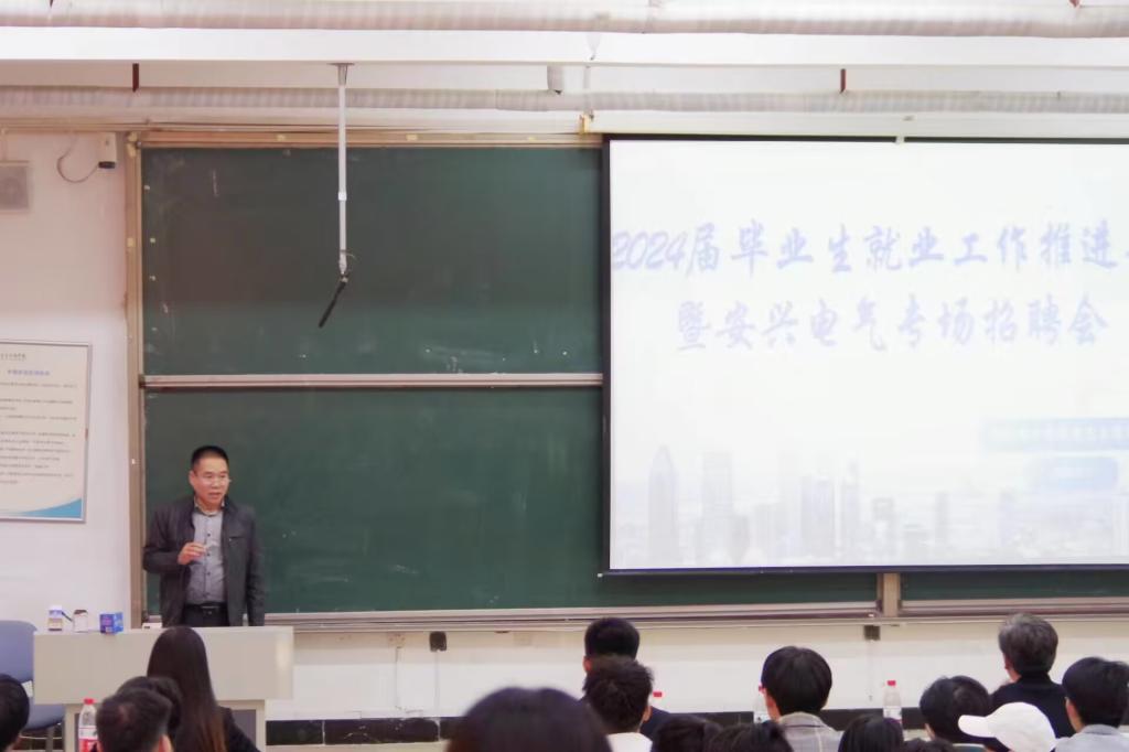 为进一步做好毕业生就业工作,11月7日下午,信息工程学院于一教106召开2024届毕业生就业工作推进会暨安兴电气专场招聘会。济南安兴电气科技有限公司总经理杜兴华、副总经理程泽昱、邓茜,信息工程学院党总支副书记王明印、团总支书记祝箐及2024届全体毕业生参加会议。