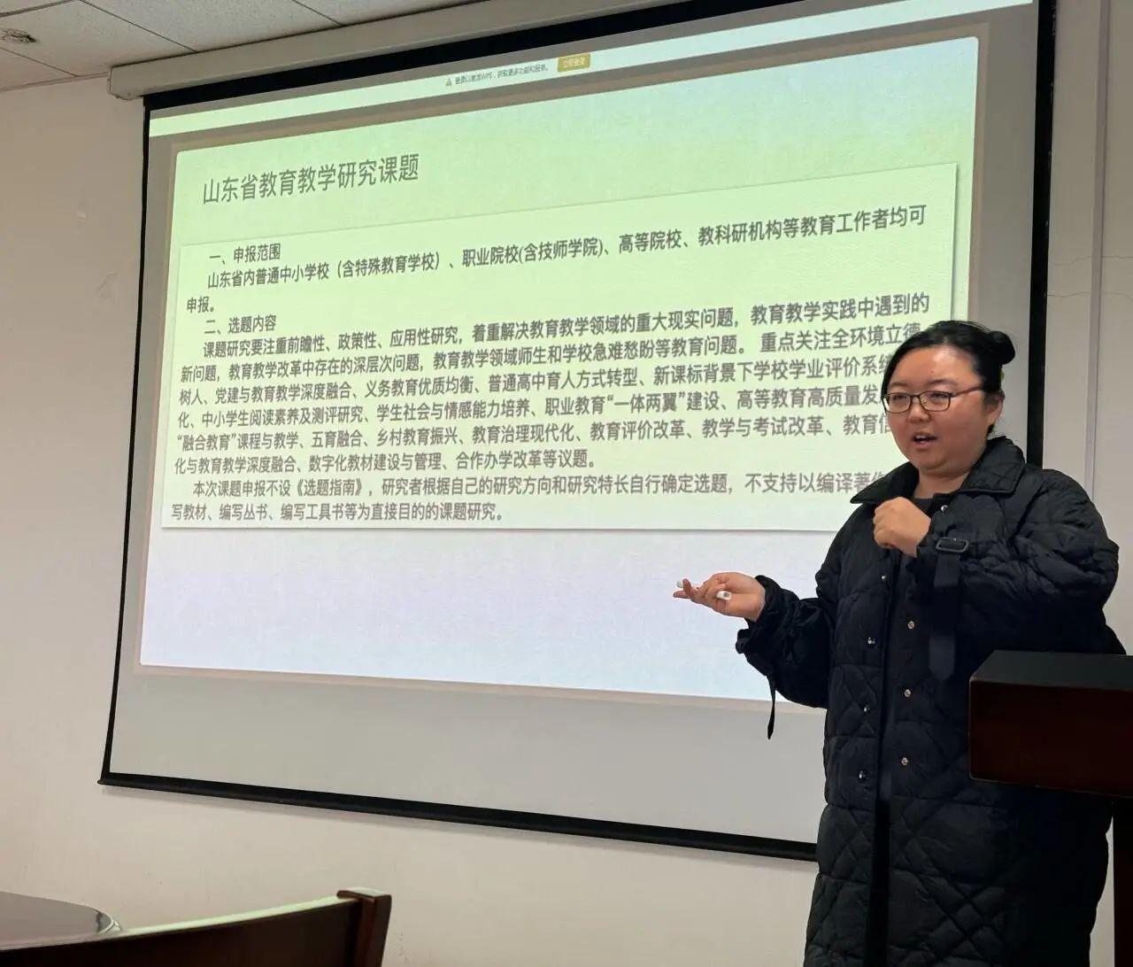 随后,薛桂丹也向大家分享了自己课题申请的宝贵经验。她强调,老师们应当有强烈的科研意识,重视课题申请,将它作为一项重要的日常工作去完成。她建议老师们将日常教学内容与科研方向相结合,专注自己研究的领域,保持科研的连贯性。要利用好身边的资源,把握住一切机会向有经验的专家取经,这不仅可以帮助老师们开拓思路,还能避免走弯路。各位老师在会后均表示此次分享交流会的内容充实,给大家带来很多启发。此次交流讲座作为有组织科研的组成部分,它的成功举办鼓舞了教师们的课题申报热情,为学院后续科研高质量发展起到了积极的推动作用。