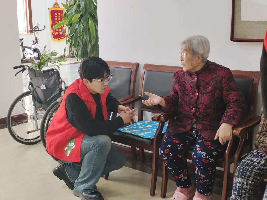 学生们在养老院内开展了一系列有意义的活动,陪伴老人聊天唠嗑、进行互动游戏、了解他们的生活经历,展示自己的才艺等等。而老人们也积极参与到活动中来,过足了瘾。