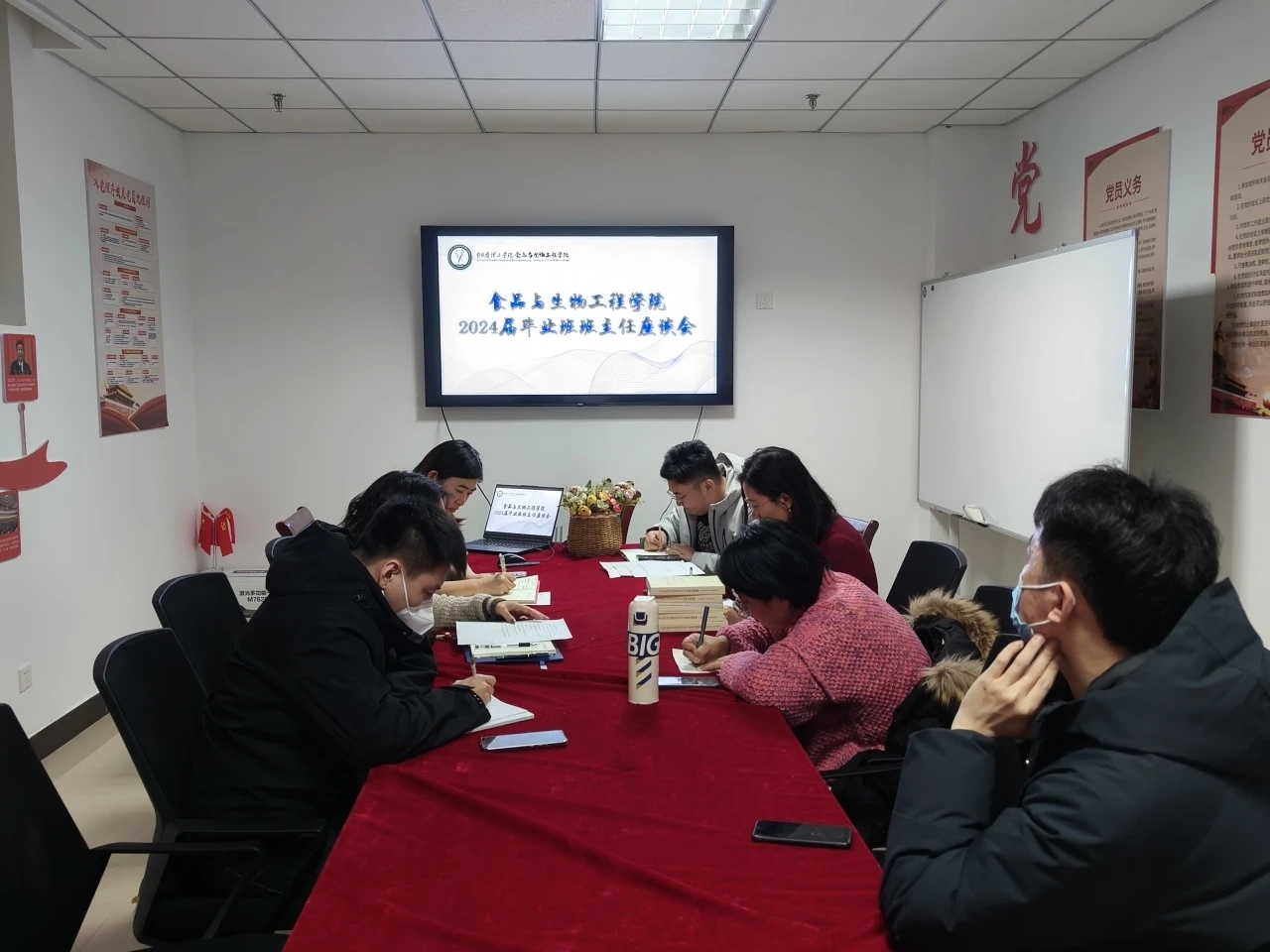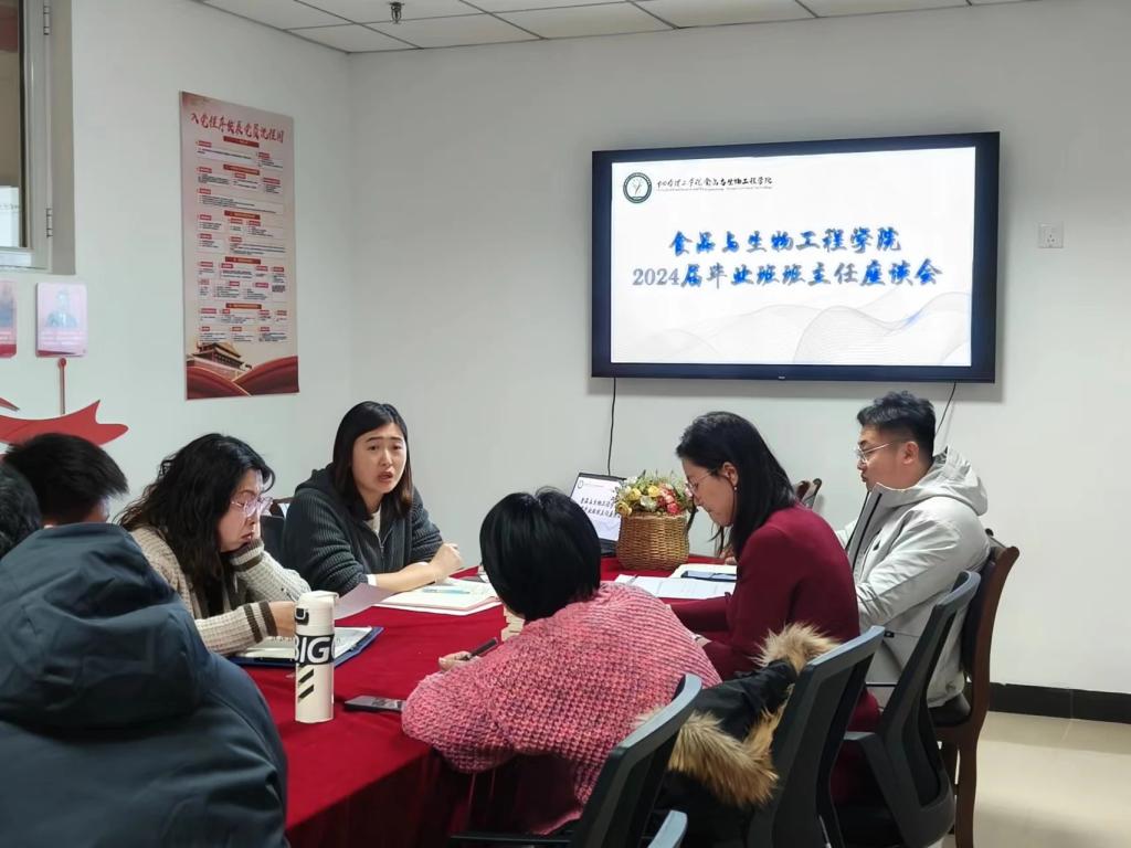 为有序开展学院2024届毕业生就业及升学工作,帮助毕业生解决就业、升学难题,指导毕业生高质量就业与升学,2月28日中午,食品与生物工程学院在综合楼S436召开食品与生物工程学院2024届毕业班班主任座谈会,出席会议的有食品与生物工程学院党总支副书记温少斐,副院长高娜、姜倩倩,辅导员孙钰涵及全体毕业班班主任。