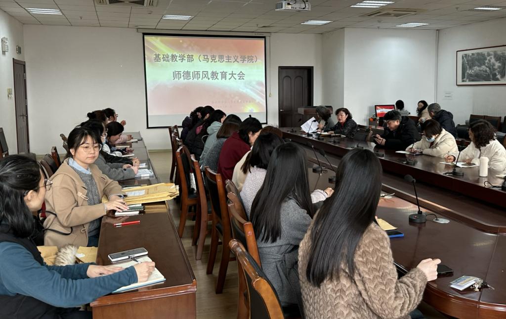 为加强教师队伍的师德师风建设,树立严格自律、廉洁从教、爱岗敬业、为人师表的良好教师队伍形象,我校基础教学部(马克思主义学院)于3月7日下午召开2024年度师德师风教育大会,组织全体教师参加,由基础教学部(马克思主义学院)副院长邵菊欣主持本次“春季开学师德第一课”并发表讲话。
