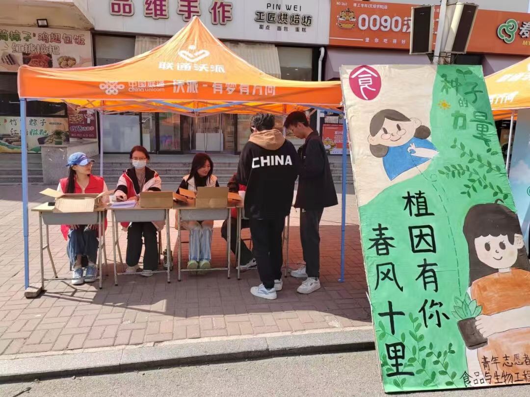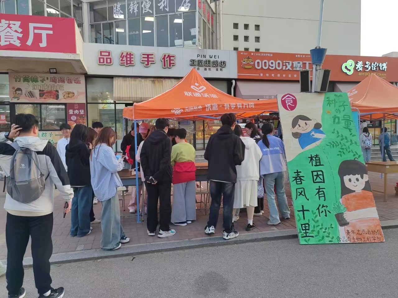 为激发广大学生树立绿色文明意识、生态环境意识和可持续发展意识,鼓励大学生亲身参与绿色植物养护行动,4月13日至4月14日,食品与生物工程学院联合青年志愿者协会在餐厅门口举办绿植领养活动。