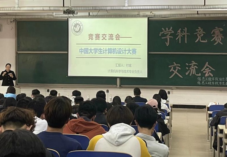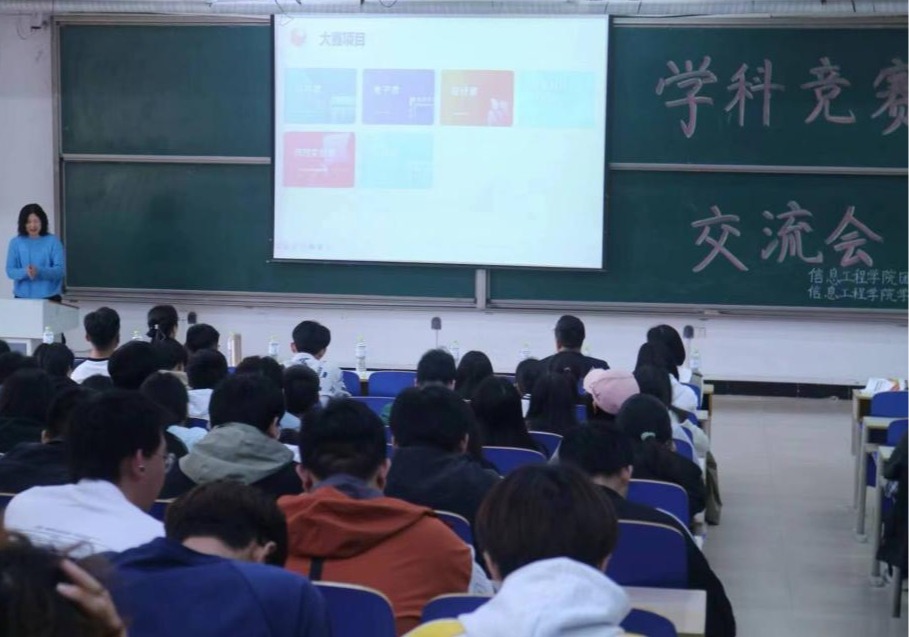 为加强学院学风建设,营造良好的竞赛文化氛围,激发同学们在学科竞赛中的创新能力,4月28日下午,信息工程学院于一教104组织开展学科竞赛交流会,各竞赛指导老师康凤、荆蕾、付斌、史晓明以及23级全体同学参加本次交流会。