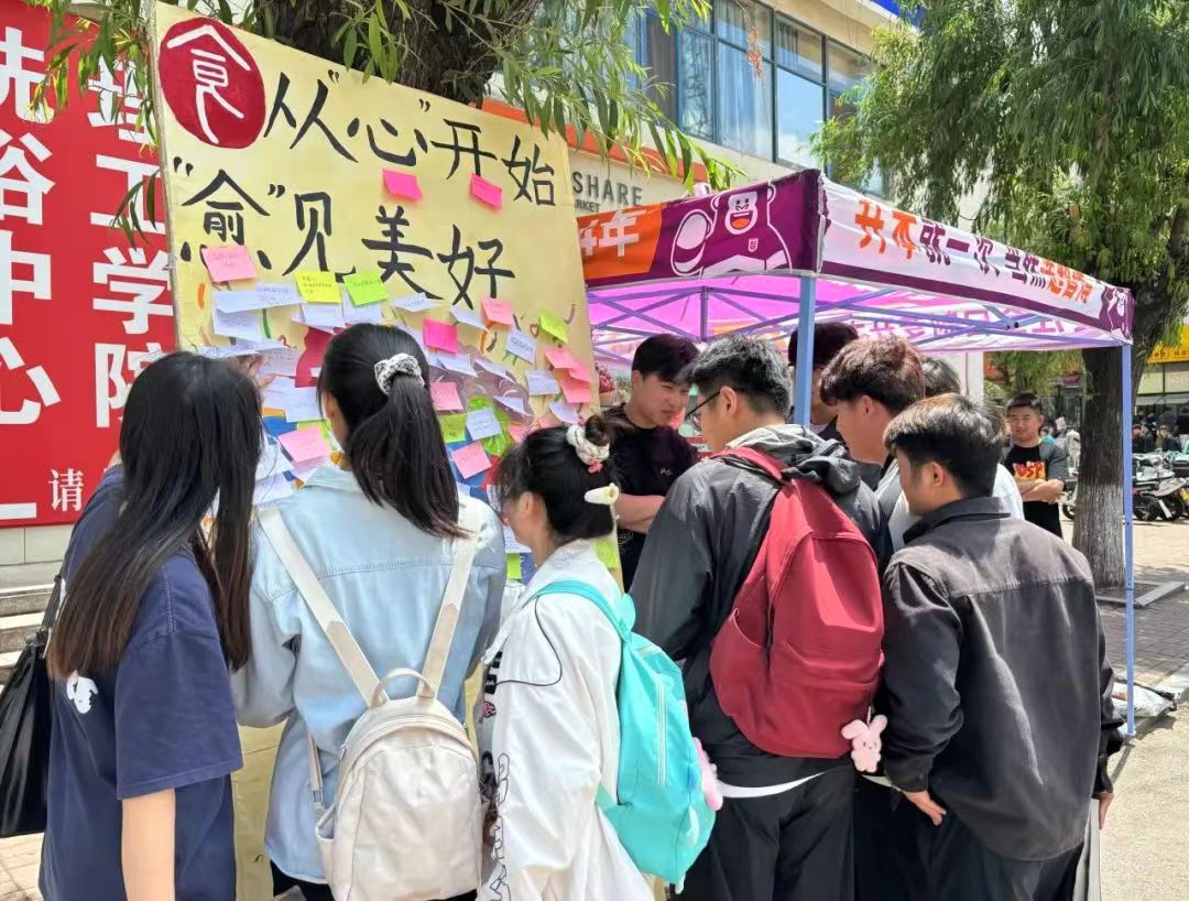 为引导同学们积极正确地应对压力与负面情绪,培育学生良好心态,促进学生健康成长,5月21日至22日食品与生物工程学院于三餐食堂门口举办从“心”开始,“愈”见美好交换心情活动。