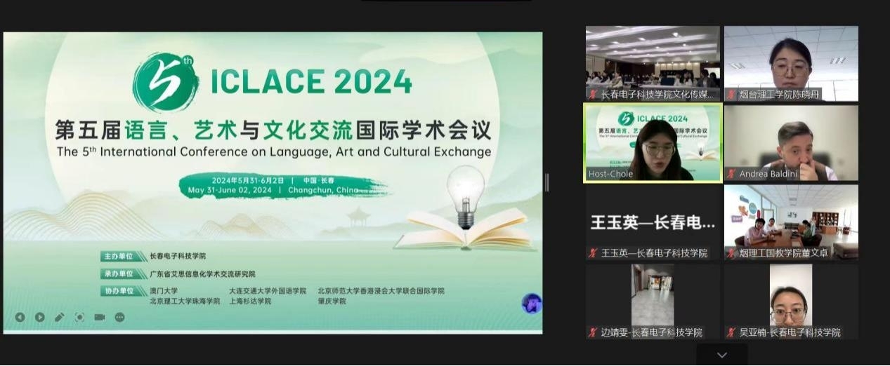 近日,第五届语言、艺术与文化交流国际学术会议在线召开,本次会议由长春电子科技学院主办,澳门大学、北京理工大学珠海学院、大连交通大学外国语学院等6所高校协办,并被纳入重庆大学科学技术发展研究院推荐列表。会议主要针对“语言”“艺术”“文化交流”等研究领域展开讨论,旨在为专家学者们提供一个分享研究成果、讨论存在问题与挑战、探索前沿科技的国际性合作交流平台。