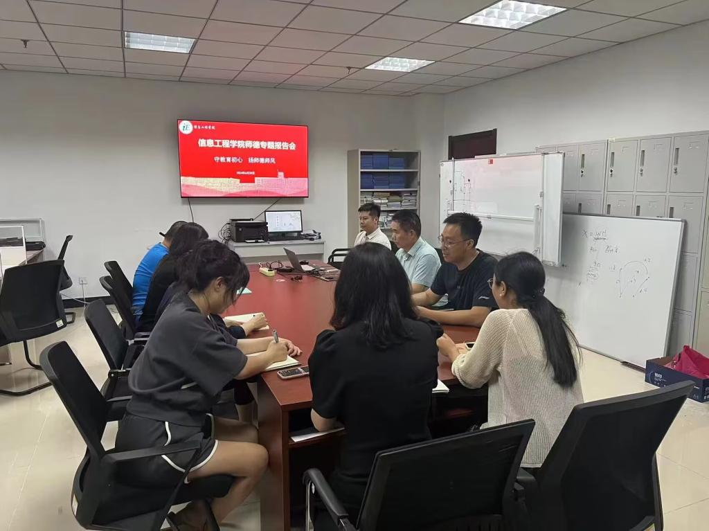 为了进一步提升教师的职业道德素养,强化教育责任担当,以师德师风推动学院教育事业高质量发展。6月20日下午,信息工程学院在综合楼S343召开了题为“教学相长——用心传承优秀传统文化”的经验分享会。会议特邀体育教学部的吕超副教授作为报告人,信息工程学院常务副院长原帅主持,学院全体教职工参加。