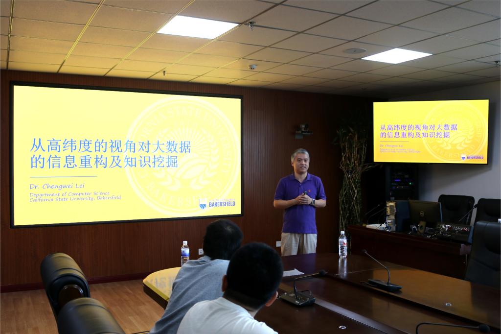 在信息爆炸时代,如何从海量的数据中提取有价值的信息,成为科研工作者和业界专家共同关注的焦点。6月27日下午,信息工程学院特邀加州州立大学贝克斯菲尔德分校计算机科学与工程系终身教授、知名大数据专家雷程炜博士,为广大师生带来了一场题为“从高纬度的视角对大数据的信息重构及知识挖掘的”学术讲座。本次讲座在综合楼六楼视频会议室举行,讲座由副校长王培进教授主持。