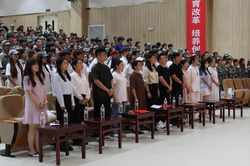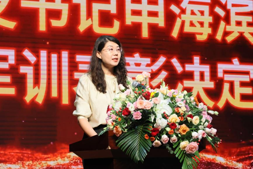 党总支书记申海滨对2024级新生军训工作进行总结,并宣读表彰决定,勉励获奖集体与个人继续保持优良作风,发挥榜样作用,鼓舞和带动身边同学共同进步,寄语全体同学以他们为榜样,内强素质,外塑形象,激发自我成长成才的主体意识,以良好的精神状态、饱满的学习热情投入到新的学习生活中,努力成长为重品格、善沟通、能做事、会创新的新时代高素质人才!