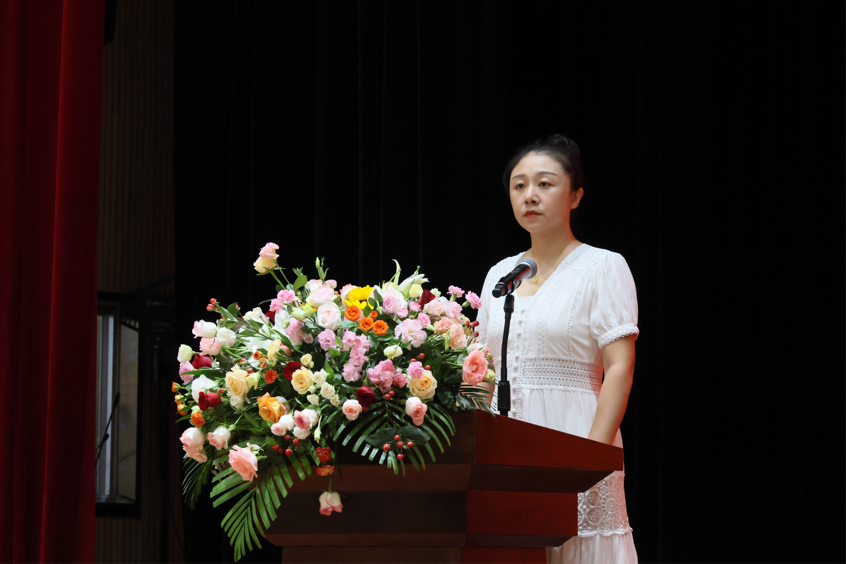 教师代表隋安琪表达了对新生们的热烈欢迎和殷切期望,在新生开启大学生活之际,结合自己多年来的教学经验,向新生分享四个大学生活关键词:主动,为自己插上一双追逐梦想的翅膀;自省与自主选择,在追逐梦想的过程中要想不迷失方向;持续拼搏的精神,奋斗从来没有终点,也不应当停歇:使命,个人的成长要担负起社会的使命。
