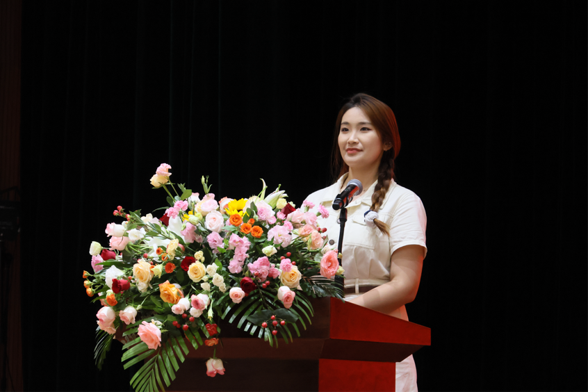 刘春彤作为优秀学生代表向即将开启人生新篇章的新生们分享了宝贵的大学生活经验与感悟,她鼓励学弟学妹们去学术研究、社会实践,还是体育竞技、艺术创作等丰富多彩的活动中都可以在其中找寻到展示自己的舞台。
