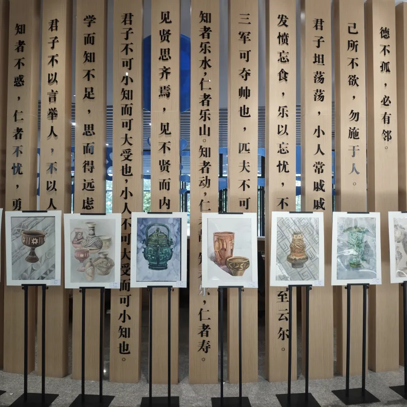 近年来,建筑工程学院环境设计、视觉传达设计专业在绘画基础课中积极探索课程思政,在教学中融入中华优秀传统文化元素,产出一系列高质量的绘画作品。多次举办优秀传统文化主题画展,在广大师生中取得良好反响。此次画展是绘画基础课中实施课程思政的成果展示。课程以黄河流域文物等为题材,通过描绘黄河流域文物,在绘画课程中融入传统文化教育,积极弘扬中华美育精神。