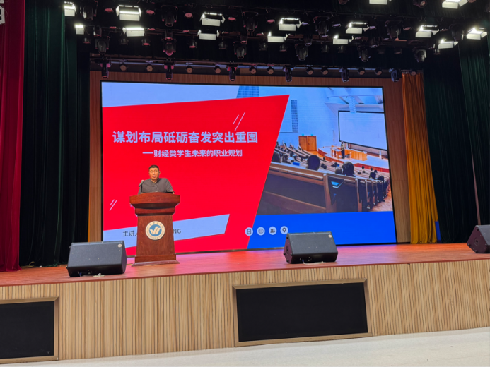 唐尔亮以《谋划布局砥砺奋发突出重围---财经类学生未来的职业规划》为主题,结合个人职业发展经验,从职业规划与自我定位、职业解析与发展预判、职业发展规划在当下等几个方面,全方位、多层次地向同学们讲解生涯规划。他通过分享职场宝贵经验,勉励同学们,要找准职业方向,将职业生涯规划做在当下,备好“专业够专、简历够亮、学识够广”的职业敲门砖!