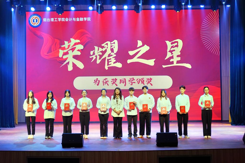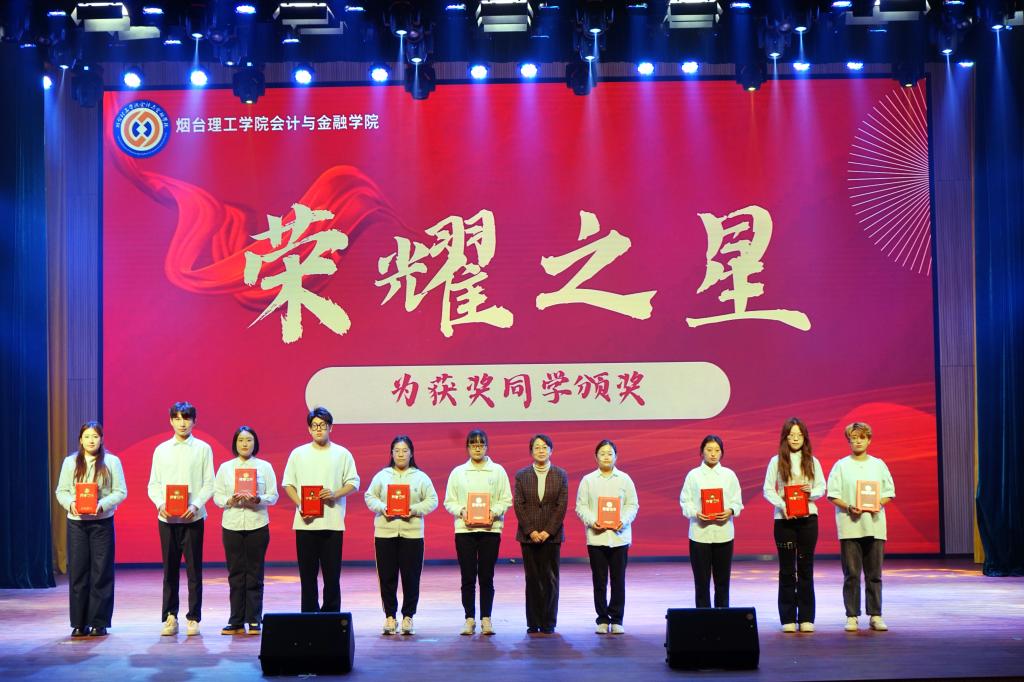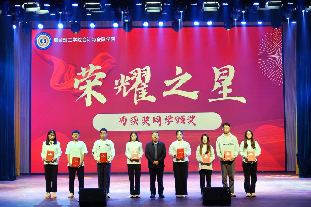 烟台理工学院党委书记盛国军、副校长苏春景、会计与金融学院院长孙桂娟、党总支书记申海滨分别为在学科竞赛和社会实践中荣获省级以上的学生代表颁奖,现场师生一同见证了获奖者的荣誉时刻。获奖者代表会2201-2班田林分享了自己的学科竞赛经历、备赛思路与感悟,他认为,竞赛不仅是个人成长的熔炉,更是团队协作的舞台,希望每一位同学都能勇敢地迈出参与学科竞赛的第一步,体验其中的乐趣和挑战,同时也为自己的成长和学习生涯增添一抹亮色。