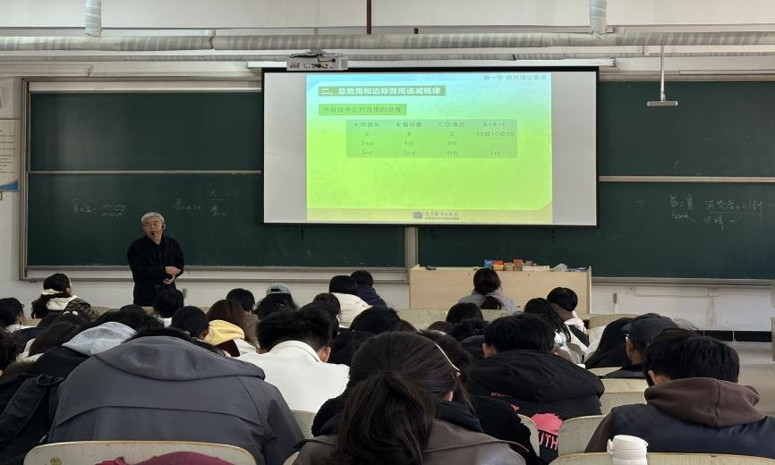 《微观经济学》是会计与金融学院会计学一流本科专业的一门核心课程,在经济学教育中占据着基础且重要的地位,是经济学的一个重要分支,主要研究个体经济行为和市场运行机制,旨在为学生提供理解市场经济中消费者和企业行为的理论基础,帮助学生建立起经济学的思维方式,并打下后续的专业课程学习的坚实基础。观摩课上,辛波老师通过多媒体向同学们讲述了基数效用和序数效用的概念,并通过所举事例对其进行了详尽讲解。辛波老师通过典型例题,向同学们讲解了总效用和边际效用的公式原理。同时,辛波老师将生活中通俗易懂的案例与相关的专业知识相结合,并采用图表对照的方式,让学生对专业知识的了解更加细致透彻。