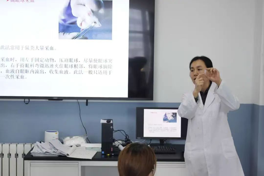 食品与生物工程学院按照我国实验动物管理规定,建设了标准的实验动物房,实验室配备了先进的解剖教学设备、高速离心机、酶标仪等大型实验仪器,同学们将在这里进行实验动物解剖、毒性评价等实验操作。在课堂上,韩冰老师首先向同学们仔细介绍了试验器械的操作、实验动物的选择,并展示了如何正确捉拿实验动物、实验动物的给药方法,为同学们掌握基本实验操作技术,树立正确的动物实验职业道德观念奠定了基础。