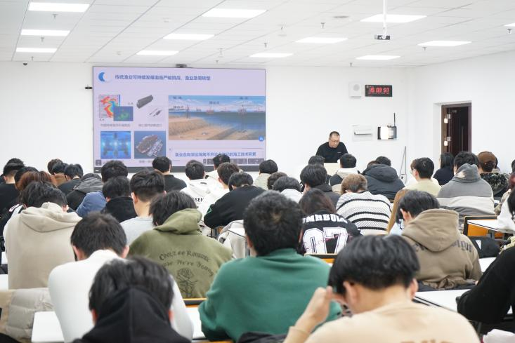 刘振明工程师以其丰富的项目技术管理经验,为学生们深入剖析了深海养殖装备的发展机遇与现状,并详细介绍了养殖装备的核心问题及突破路径。他的讲解不仅让学生们对深远海养殖装备有了更深入的认识,还激发了他们对这一领域未来发展的思考。