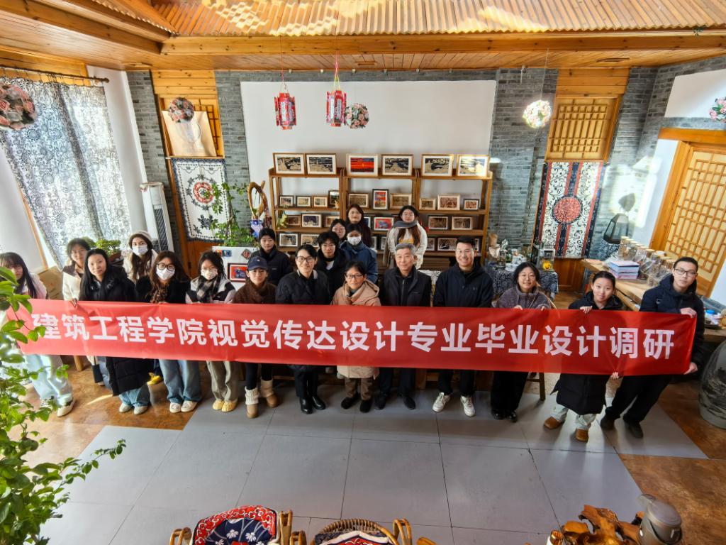为推动建筑工程学院视觉传达设计专业毕业设计非遗版块课题与地方文化的深度结合,提升毕业生对传统工艺的理解和创新设计能力,建筑工程学院视觉传达设计专业于12月6日开展了“毕业调研第四期——非遗传承 走进烟台民生印花非遗工坊”活动。建筑工程学院常务副院长田娜、视觉传达设计教研室主任王金龙带领视觉传达设计专业毕业生一同参观烟台民生印花非遗工坊,由工坊负责人朱武学先生为师生们进行详细讲解和指导。