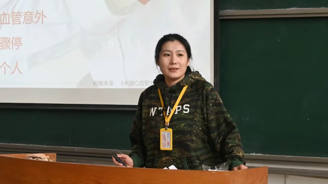 急救知识科普同样精彩呈现。陈卓借助模型现场演示心肺复苏、人工呼吸等实用急救技能。边操作边详细讲解要点和注意事项,同学们积极响应,很快掌握了这些关键技能。