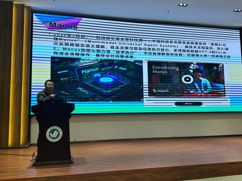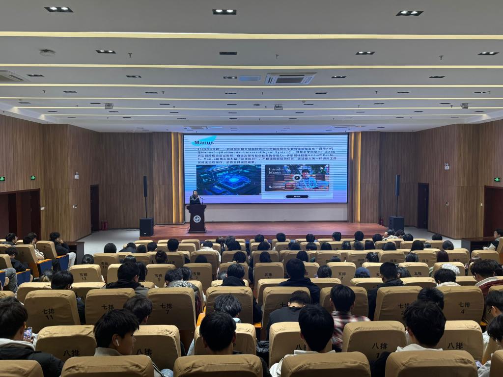 为了让同学们更好地了解大模型技术的发展现状与应用前景,激发同学们对人工智能领域的探索热情,人工智能学院于3月11日,综合楼六楼报告厅,特邀迟殿委副教授开展“大模型技术与应用”的主题讲座。本次吸引了众多对人工智能感兴趣的同学前来聆听,现场气氛热烈。