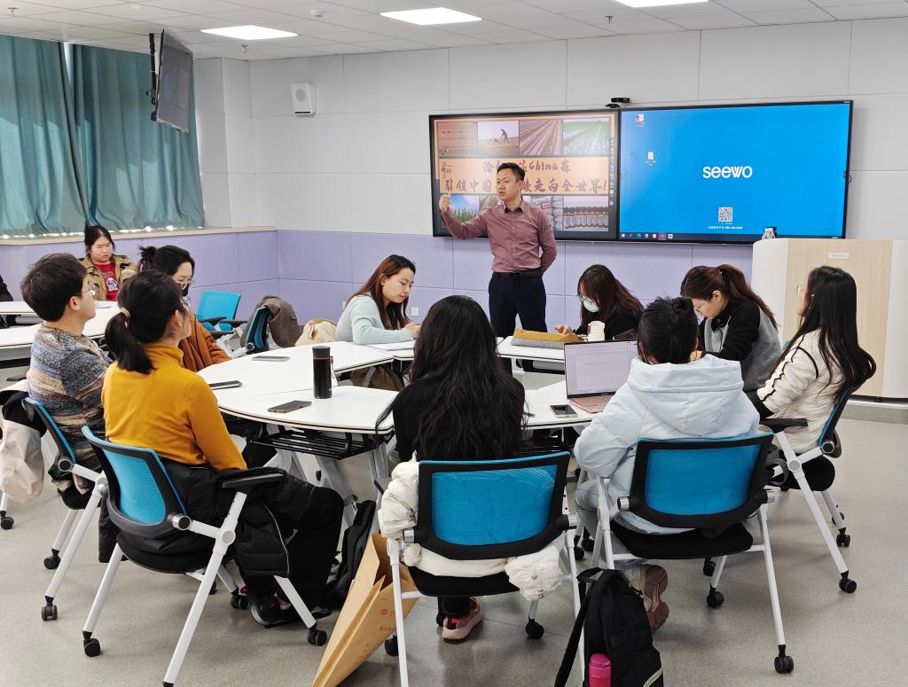莘海东结合其指导的全国获奖项目展开深度分享。他重点解析了南昌师范学院罗小庆团的“‘一线生鸡’——行业标准制定者 乡村振兴‘鸡’先锋”项目和安徽财贸职业学院“‘蒜’我狠——让大蒜破茧成蝶”项目案例,展现了以创新思维破解行业痛点的巨大潜力,展现农业产业链创新的实践价值,也为同学们提供了宝贵的创业启示。