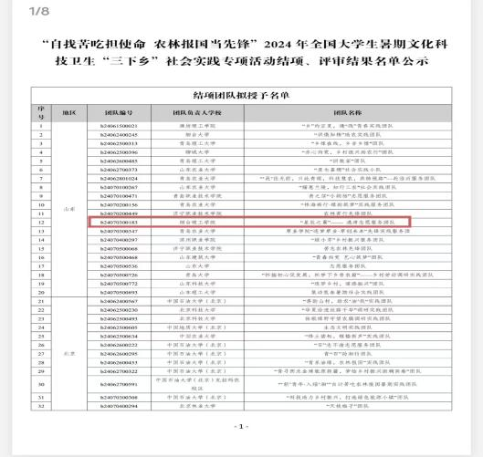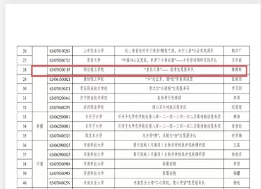 近日,在团中央青年发展部的指导下,团黑龙江省委学校部和全国农林高校共青团共同开展的“自找苦吃担使命 农林报国当先锋”2024年全国大学生暑期文化科技卫生“三下乡”社会实践专项活动中,人工智能学院港湾志愿服务队荣获优秀实践成果、优秀调研报告,指导老师陈鹏程荣获优秀指导老师称号。