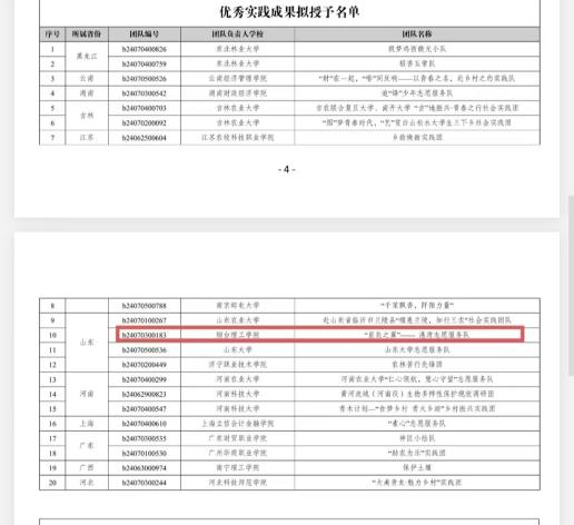 团队成员在本次实践活动中顺利完成所有任务,荣获优秀结项团队称号;陈鹏程老师在本次实践活动中指导经验丰富,荣获优秀指导教师称号;团队成员在本次实践活动中成果丰富,荣获优秀实践成果称号;团队成员在本次实践活动中调研内容多样,荣获优秀调研报告称号。