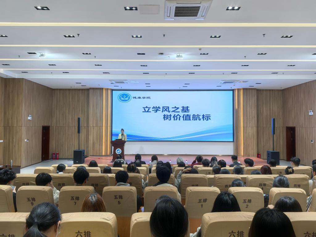 为进一步加强学风建设,引导学生树立正确的价值观和学习态度,3月25日,健康学院在综合楼六楼报告厅举办了“立学风之基 树价值航标”主题讲座,健康学院党总支书记刘大华出席,班主任及任课老师参加,团总支书记董瀚文主持。