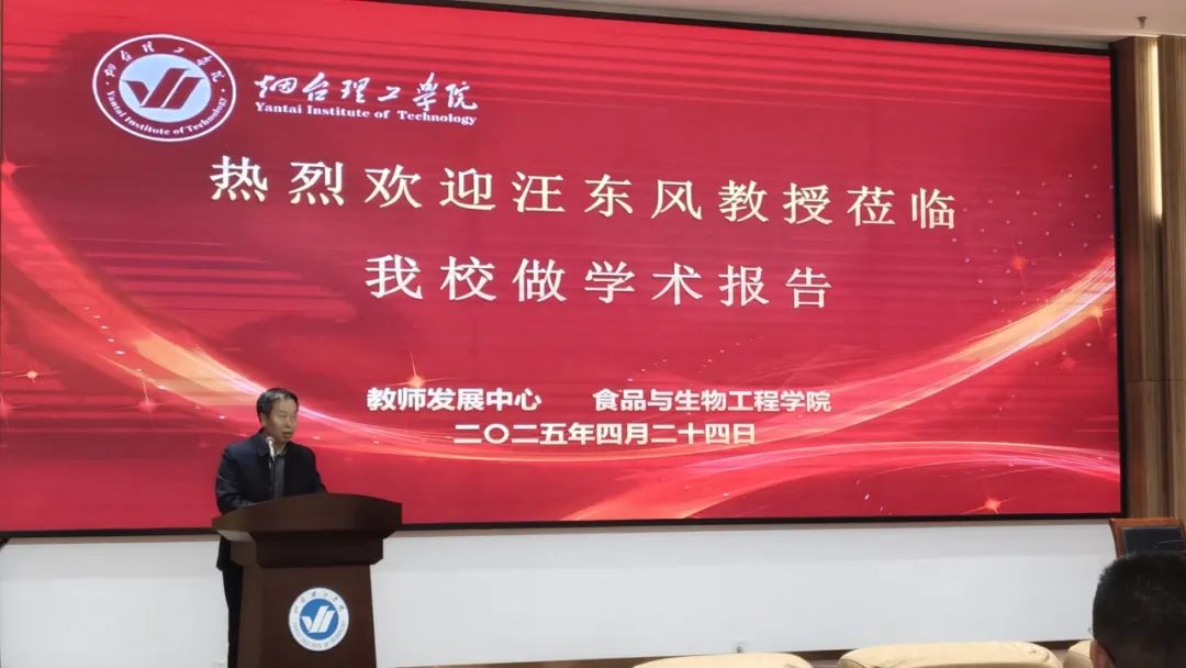 为深入大力弘扬与践行教育家精神,加强教师队伍建设,提升教师专业素养与育人能力,食品与生物工程学院联合烟台理工学院教师发展中心于4月24日下午在综合楼六楼报告厅开展“以教育家精神为引领,争做新时代‘四有’好老师”主题讲座。本次主题讲座邀请到中国海洋大学二级教授、国家级教学名师汪东风教授担任主讲人,党委书记盛国军出席并致辞。