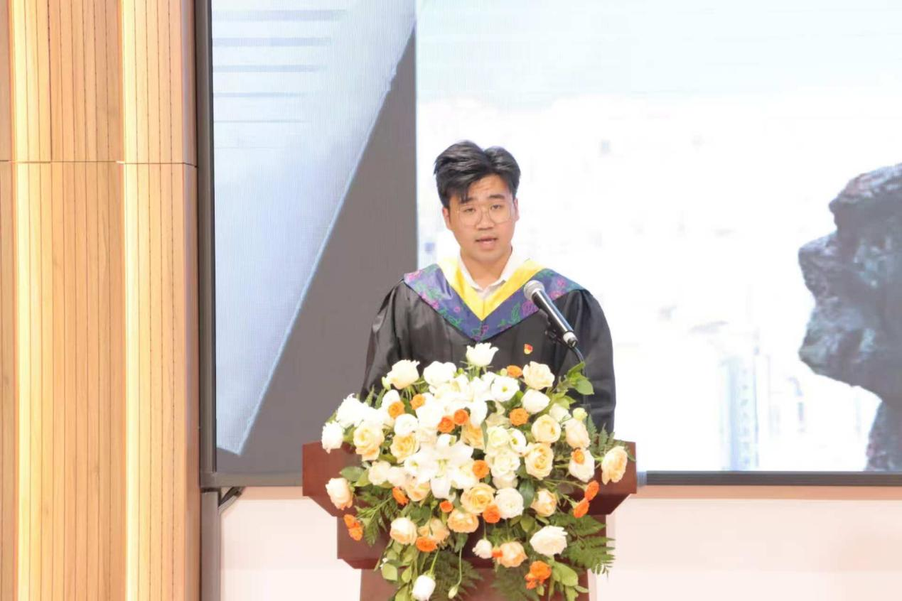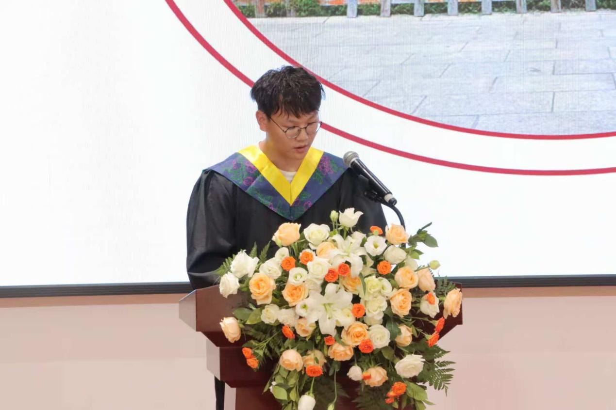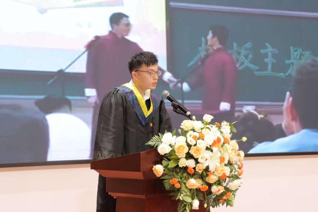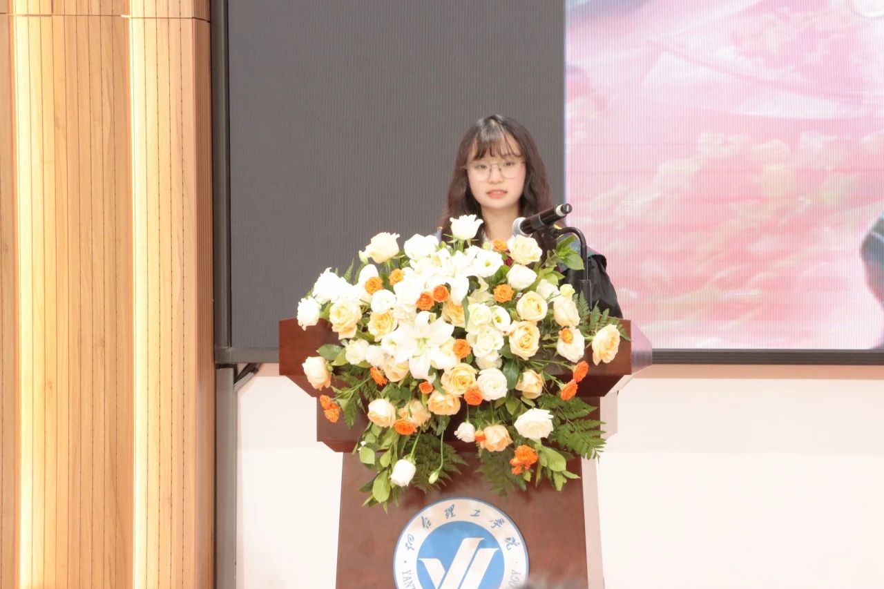 孙诗菡老师以“知识引路人”的身份寄语学子。她回顾与学生共度的求知时光,勉励毕业生以扎实的学识为帆,以探索的热情为桨,在人生新航程中勇立潮头,做“心中有火、眼里有光”的追梦人。