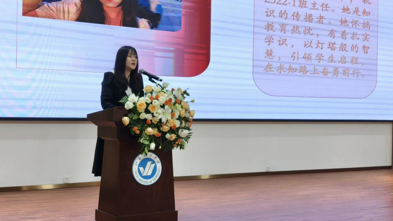在班主任叮咛环节,机2322-1班主任孙诗菡、机2322-2班主任刘婷、机2321-2班主任王欣欣、机2151-1班主任于洋四位老师依次登台,以深情话语为毕业生送上祝福与展望,现场掌声与感动交织。