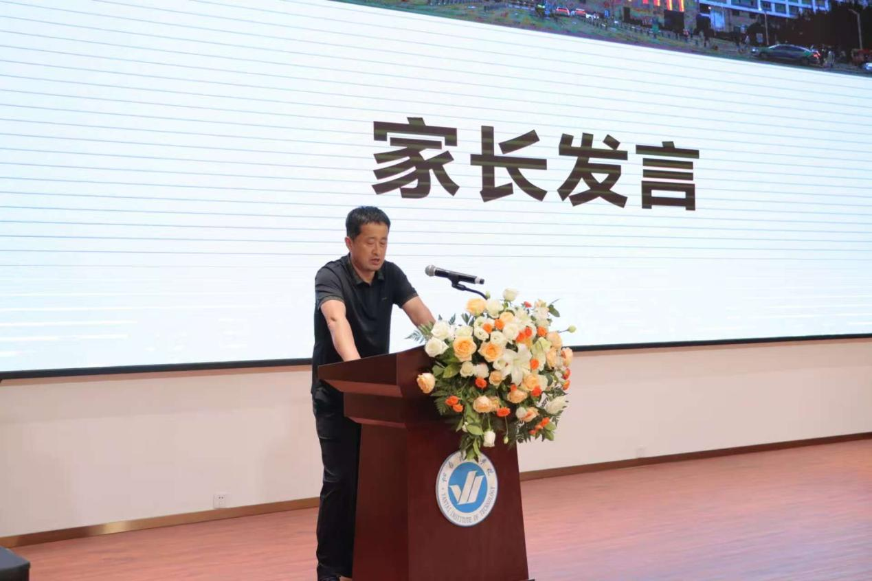 机2151-1班班长刘霁晨的父亲作为学生家长代表在发言中表达了对烟台理工学院机电工程学院培养的感谢。他回顾了孩子从入学到成长的点滴,称赞学院严谨的学风和教师们的悉心指导,并勉励全体毕业生常怀感恩之心,以积极姿态迎接人生新篇章。现场掌声不断,师生家长共同感受这份温暖与力量。