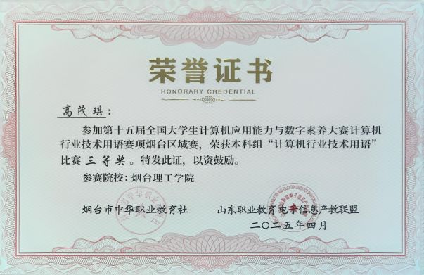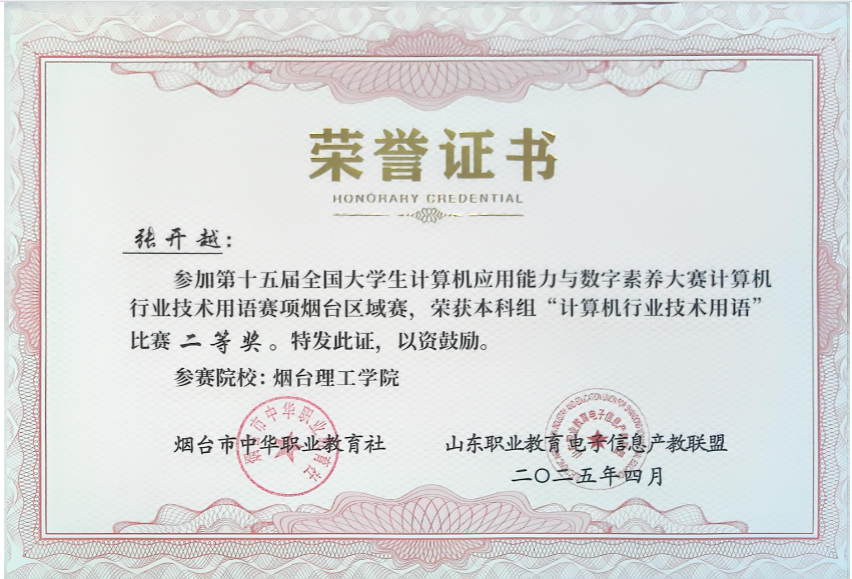 近日,第十五届全国大学生计算机应用能力与数字素养大赛计算机行业技术用语赛项烟台区域赛结果正式公布,人工智能学院收获多项荣誉。