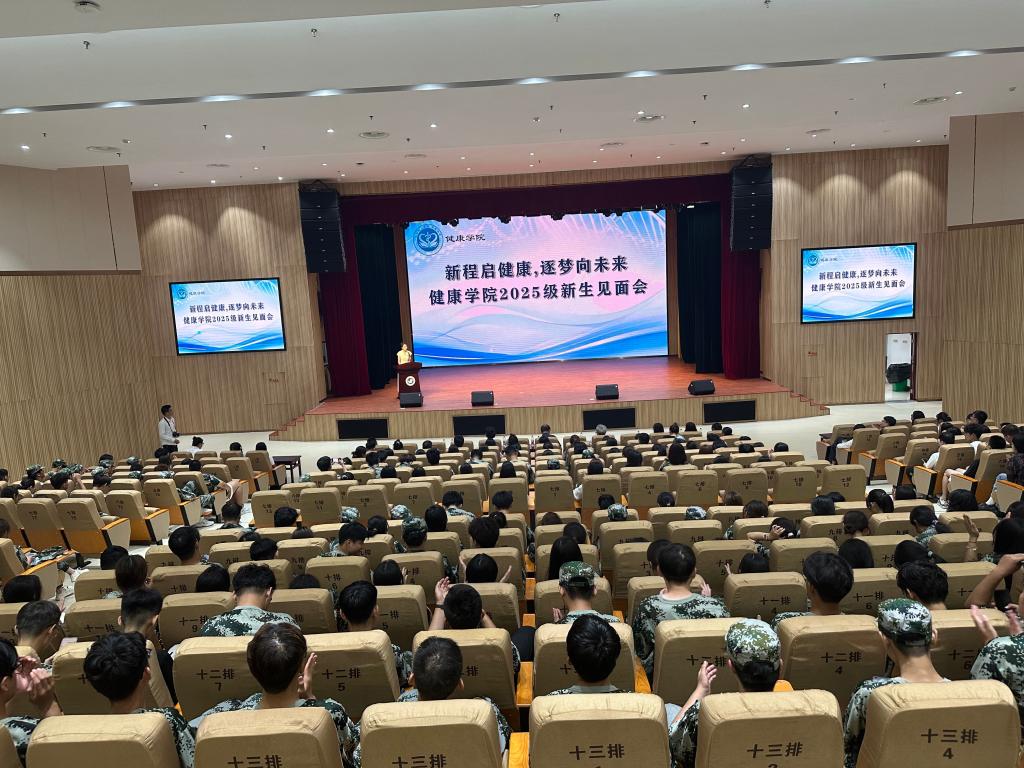 9月14日晚,健康学院2025级新生见面会在综合楼一楼报告厅举行。健康学院名誉院长张培功、院长冯卫红、党总支书记刘大华、副院长李雪与全体教师以及2025级全体新生参加。